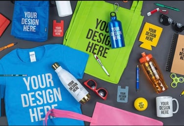 Pens, mugs, tote bags, and water bottles designed to make your message stick.