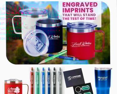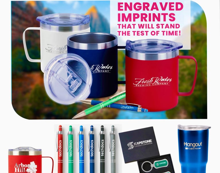 Pens, notepads, mugs, and water bottles tailored for your brand.